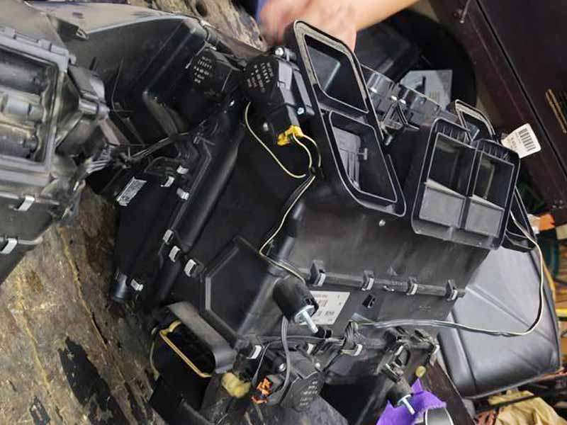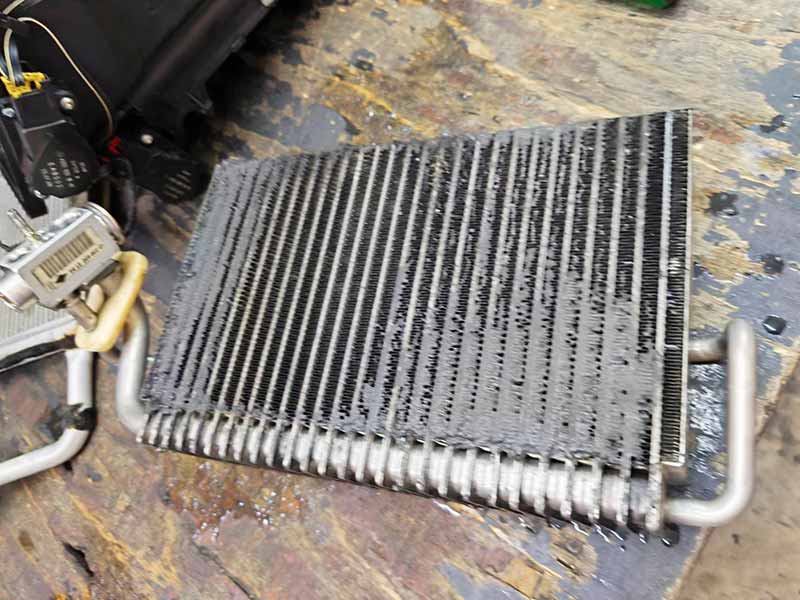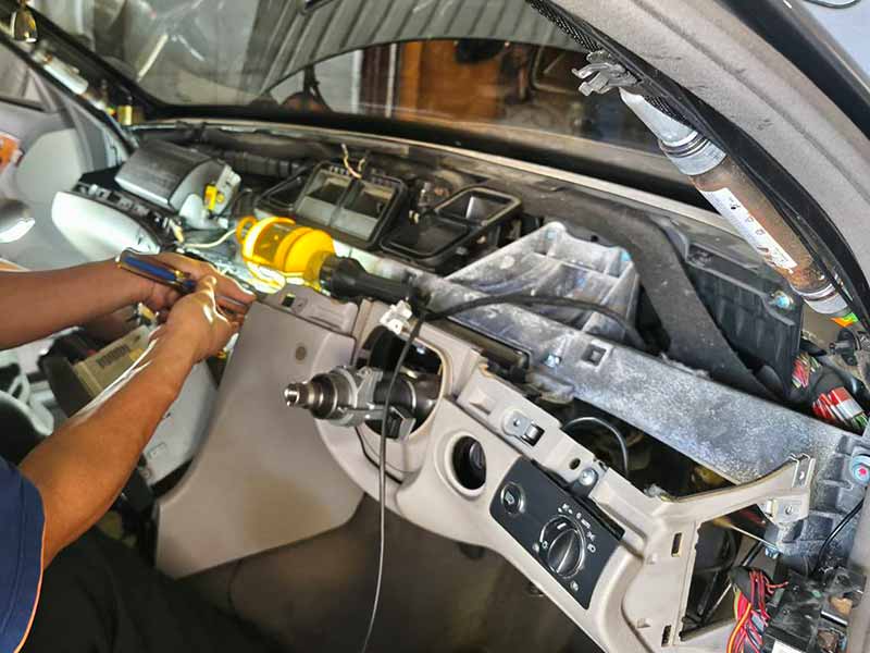 ซ่อมแอร์ Benz E300 W211 แอร์ไม่เย็นมีแต่ลม มีกลิ่นสารเคมีในรถตอนเปิดแอร์ เติมนํ้ายาอยู่ได้ 3-4 วันหมด