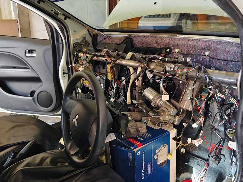 ซ่อมแอร์ Mitsubishi Mirage แอร์ไม่เย็นมีแต่ลมร้อน แอร์เย็นข้างเดียว น้ำยาแอร์ขาด ตรวจเช็คภายนอกไม่พบจุดรั่ว ซึม ตรวจเช็คภายในแล้วพบว่าปัญหาเกิดจากตู้แอร์รั่ว ร้านซ่อมแอร์รถยนต์ สตาร์แอร์บางบัวทอง เราซ่อมเสร็จภายในวันเดียวครับ