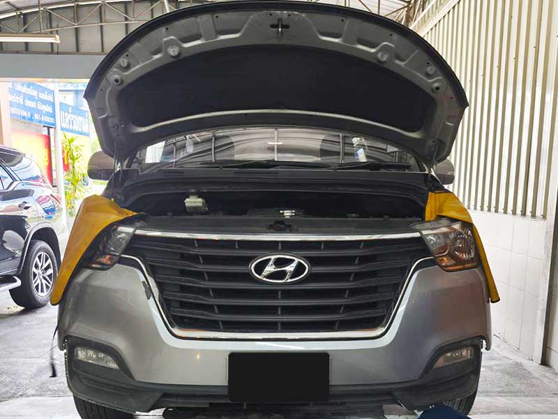 ซ่อมแอร์ Hyundai H1 แอร์ไม่เย็นมีแต่ลมร้อน มีกลิ่นอับชื้น
