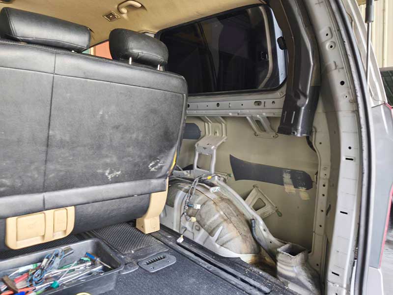 แอร์เย็นสองฝั่งไม่เท่ากัน ตรวจเช็คพบว่าสายน้ำยาและตู้แอร์ด้านหลังรั่ว